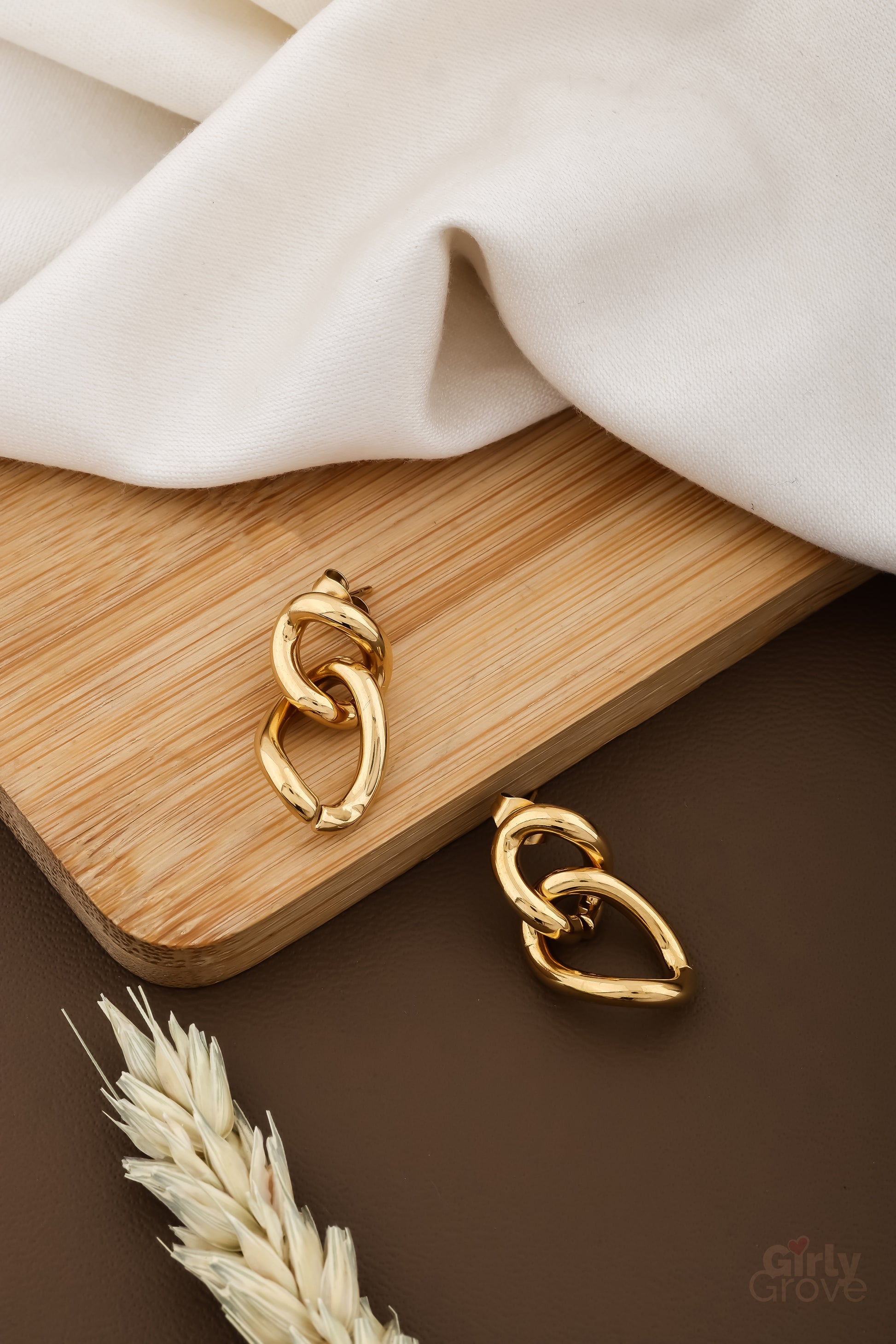 Step into modern luxury with these chunky chain link earrings. Featuring a statement-making interlocking design, these 18K gold-plated beauties are the perfect blend of bold and sophisticated. Their anti-tarnish, waterproof, and sweatproof finish ensures they remain as radiant as you!