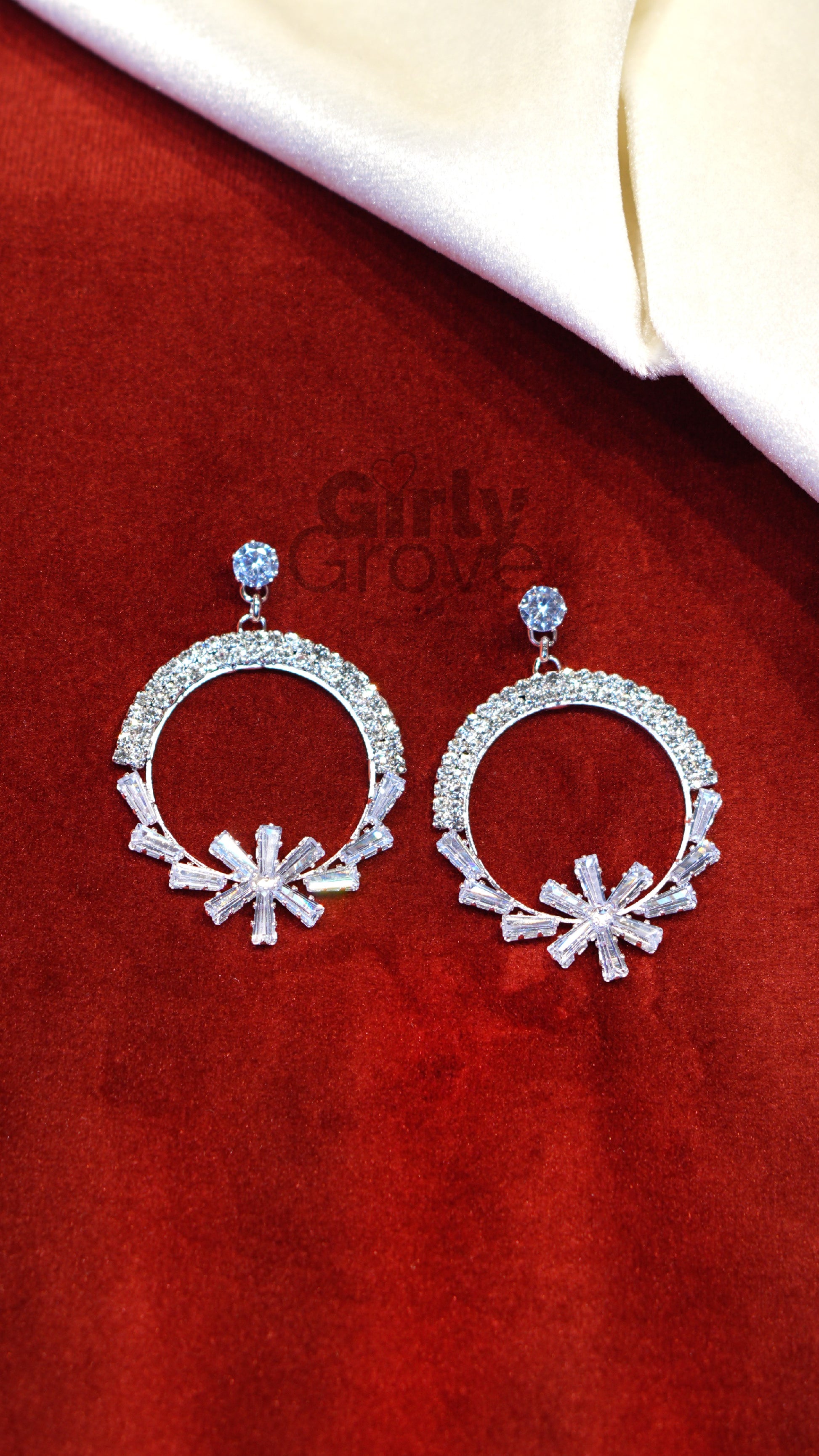 These stunning zircon-studded circle earrings feature intricate snowflake accents, making them the perfect blend of elegance and charm. Designed to catch the light from every angle, these earrings are ideal for weddings, parties, or festive occasions.