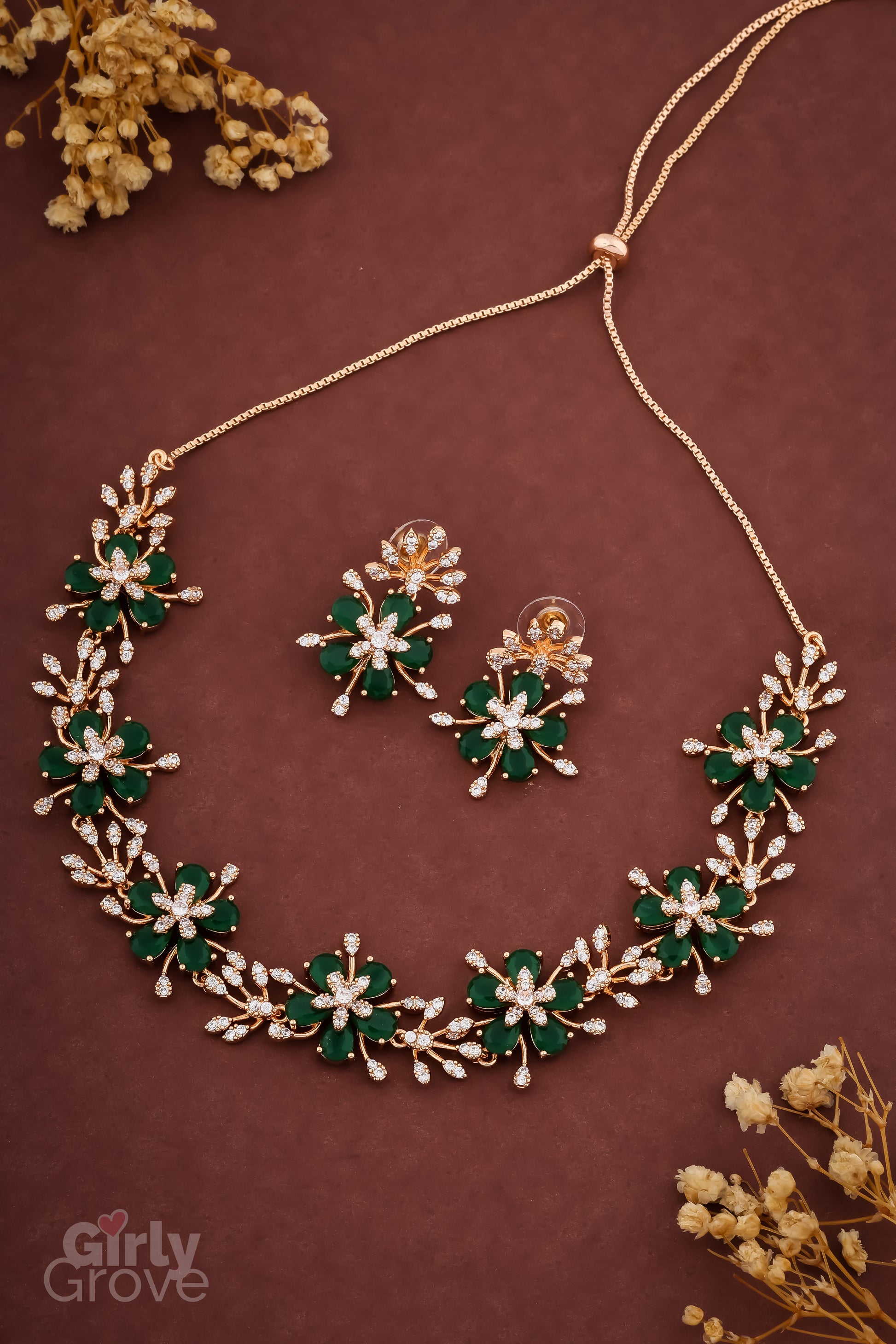 Adorn yourself with the Emerald Bloom Necklace Set – because elegance never goes out of style!
