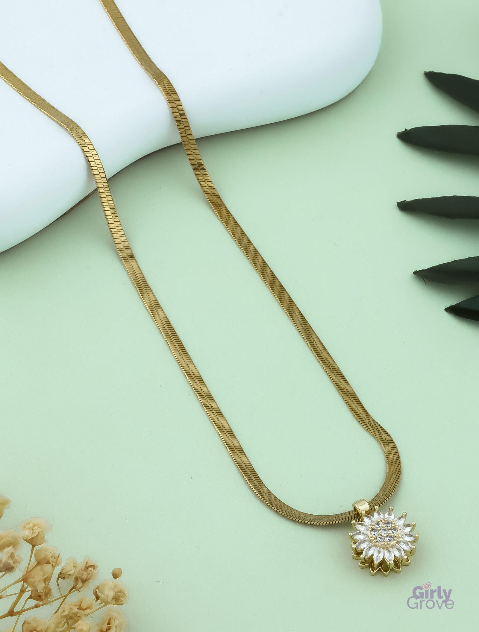 This gold-plated lotus pendant necklace symbolizes purity, strength, and elegance. Adorned with shimmering details, it's perfect for both everyday wear and special occasions.