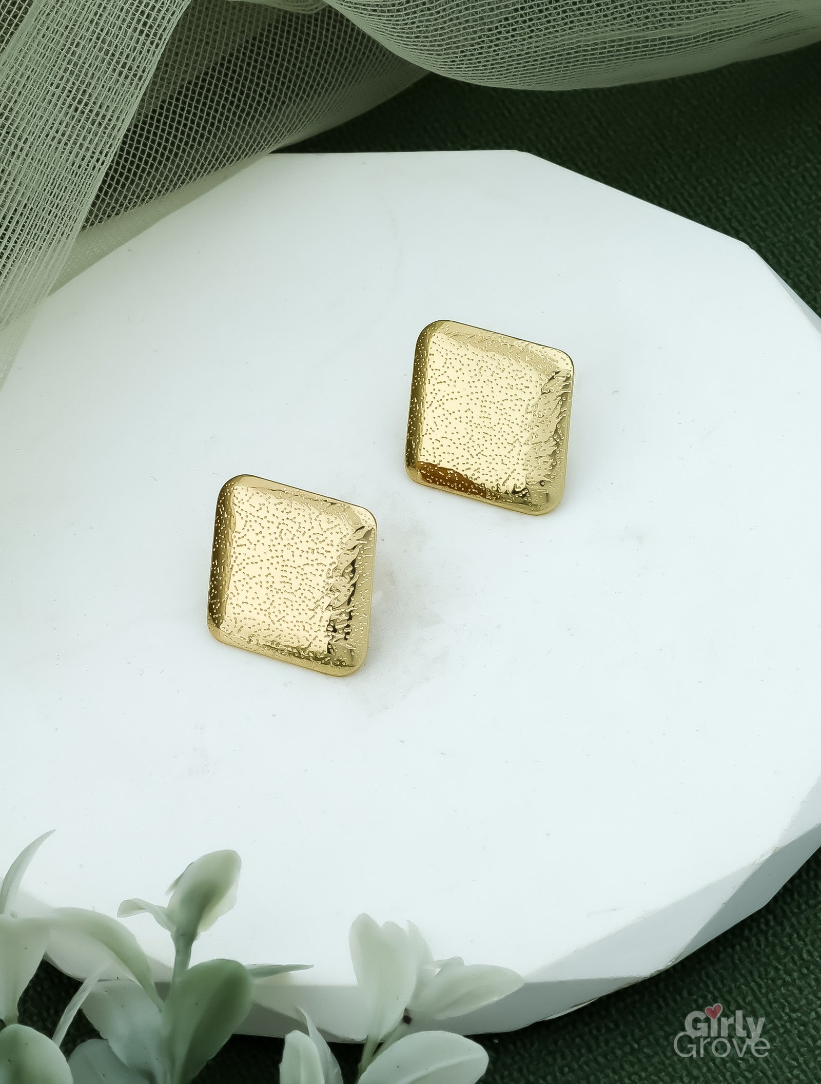 Minimal yet bold! These gold-plated textured square earrings feature a unique hammered finish, making them a timeless statement piece for modern elegance. Perfect for effortless styling with any look.