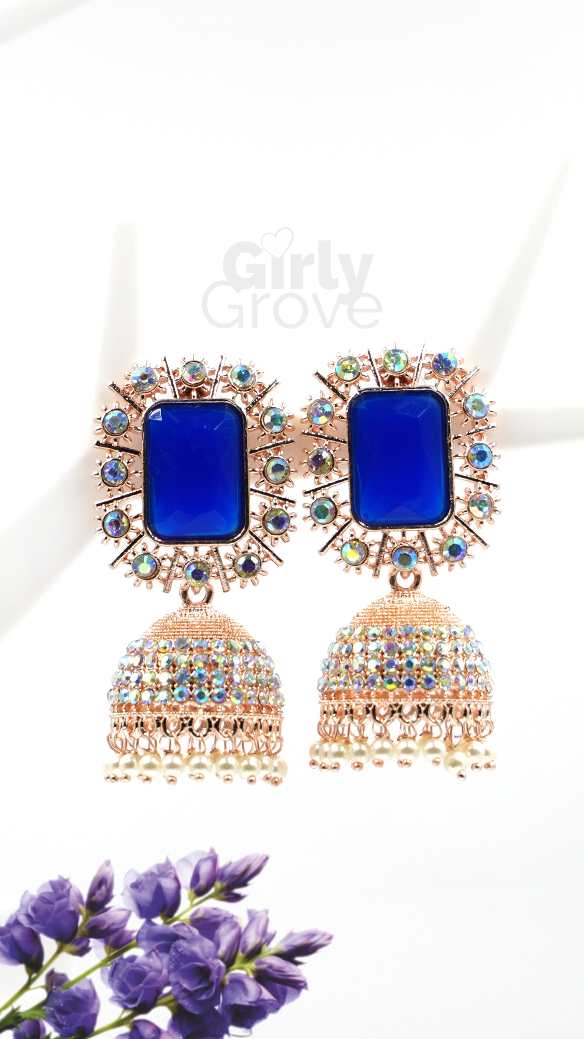 Enhance your elegance with our exquisite collection of Royal Charm Stone Studded Jhumka Earrings. These captivating earrings feature a stunning rectangular stone surrounded by sparkling embellishments, perfectly paired with intricately designed jhumkas adorned with shimmering stones and delicate pearl drops. Ideal for festive occasions, weddings, or any event where you want to add a touch of royalty to your style. The earrings are crafted to provide a blend of traditional and modern elegance, making them versatile for any wardrobe.