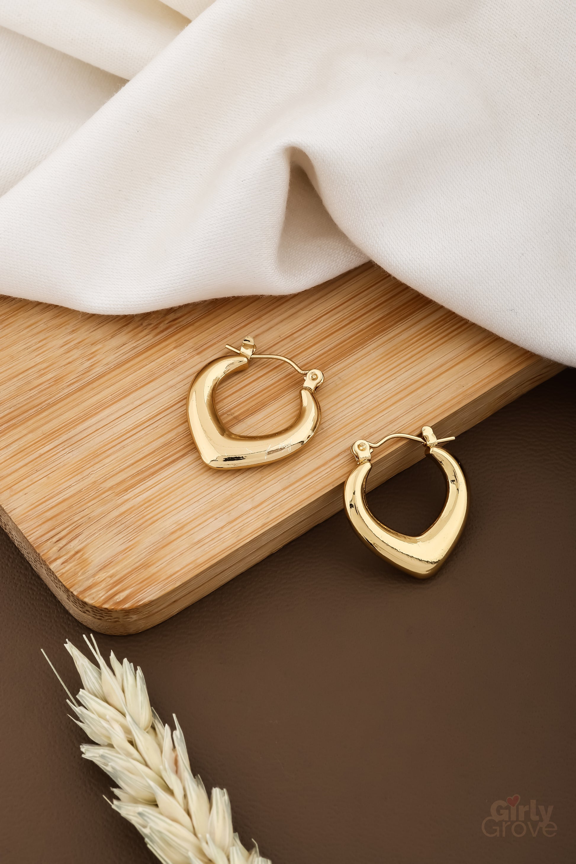 Minimal yet mesmerizing, these sleek heart hoops are the perfect blend of modern elegance and timeless charm. Designed with 18K gold plating, they are waterproof, anti-tarnish, and sweatproof, ensuring a long-lasting glow. Their versatile silhouette makes them ideal for daily wear and statement looks alike.