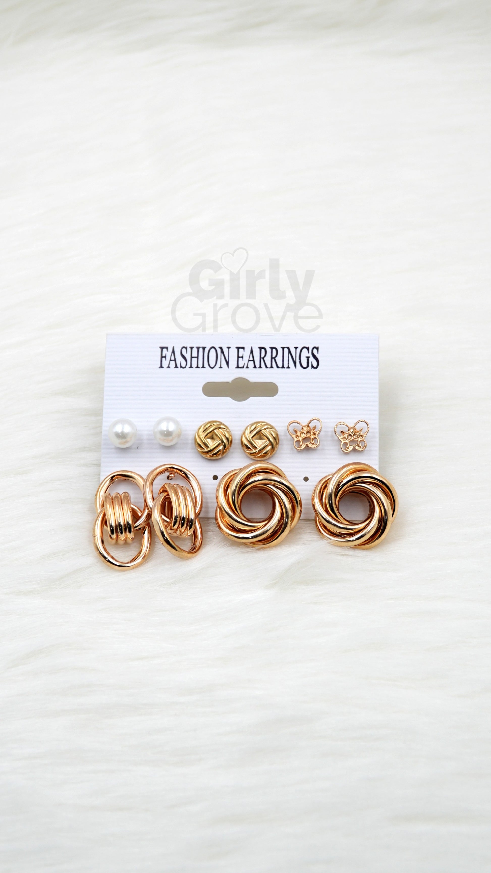 Elevate your accessory game with our versatile Gold-Tone Earring Set, designed for both casual and elegant wear. This set features six pairs of earrings in varied designs—ranging from pearls to intricate floral patterns—making it a perfect fit for every occasion. Whether you're heading to a brunch or a formal event, this collection has something for every mood and outfit.